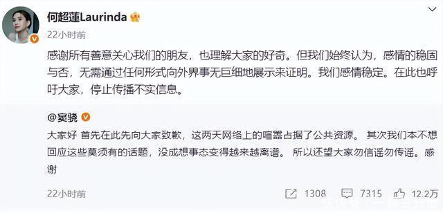 后来传出婚变之后,也可能是两人因为工作原因没有同框合作拍视频什么的,而且这件事情也完全就是无稽之谈,感情从来不能用这种事情来验证。 随后两人见着舆论越来越大,纷纷回应了这件事情,说实话这些传闻对感情稳定的他们来说就有点恶心了。