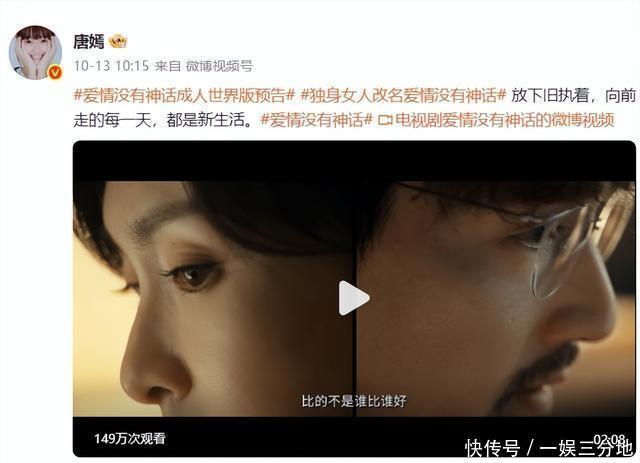 动态中她发了一条她拍的剧《爱情没有神话》,剧中饰演了女主角,可见她的影响力还是如此之大。 值得一提的是这部电视剧是一部小说改编的电视剧,而且还是有关于独身女性话题的电视剧,感觉非常不错。